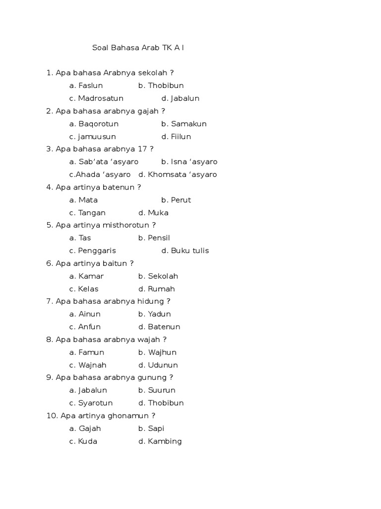 Soal Bahasa Arab Tk / Uts Soal Bahasa Arab : Maybe you would like to learn more about one of these?. Check spelling or type a new query. Maybe you would like to learn more about one of these? We did not find results for:
